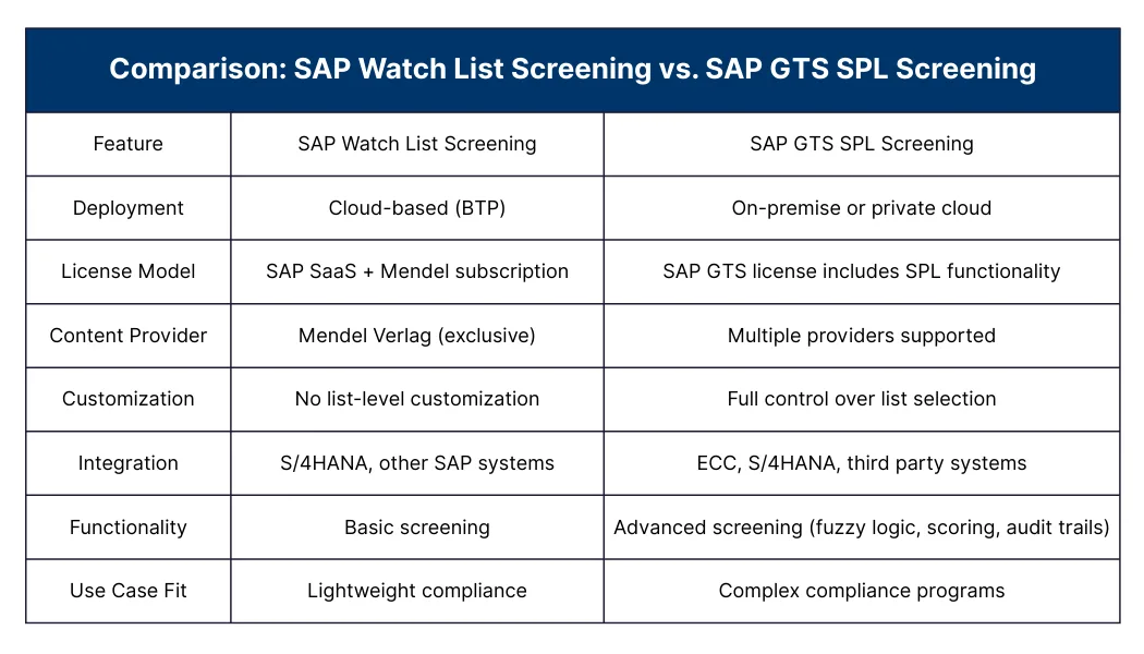 SAP Watch List Screening: Licensing, Content, and Comparison with SAP GTS